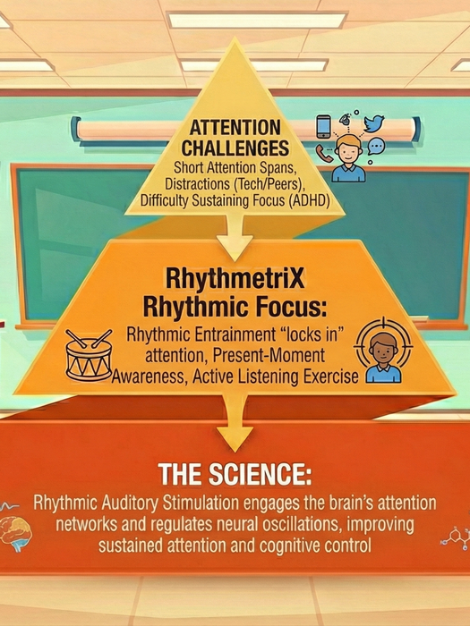 RhythmetriX is accessible, inclusive, and exceptionally effective for neurodivergent and special needs children because it directly tackles key areas of delayed development, particularly the prefrontal cortex. The use of challenging, non-verbal rhythmic engagement provides a necessary skill -- how to pay attention on purpose -- that is often not taught. By leveraging movement and rhythm for self-regulation, the program equips children with a consistent, non-judgmental internal tool to manage emotional reactions and build resilience in challenging moments in a phenomenal SEL modality that is downright fun -- especially for cohorts with ADHD, autism, down syndrome, and more.